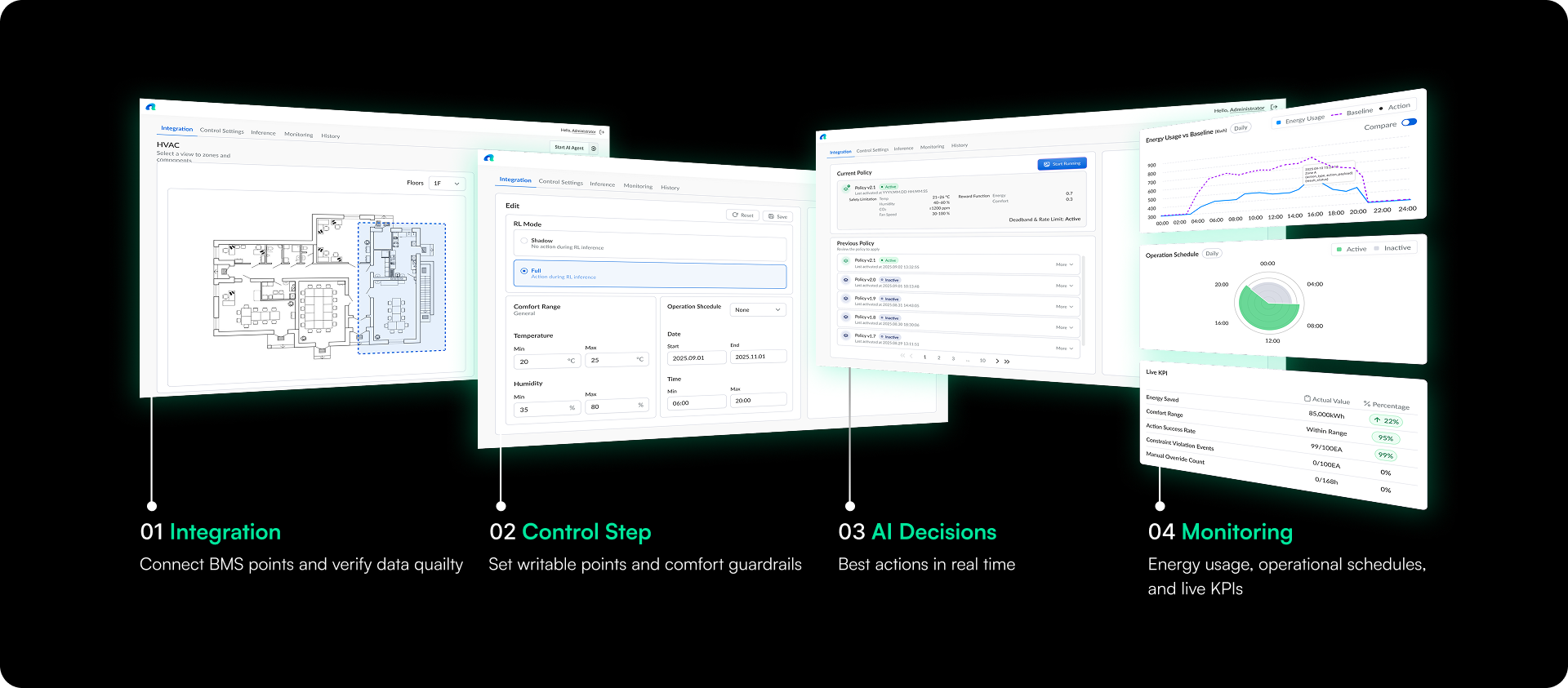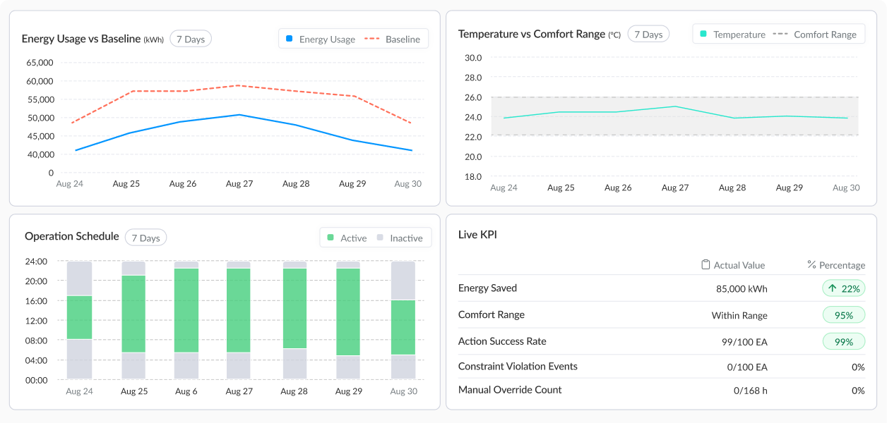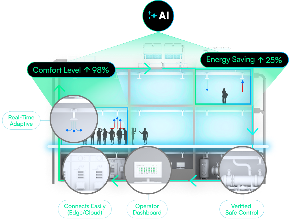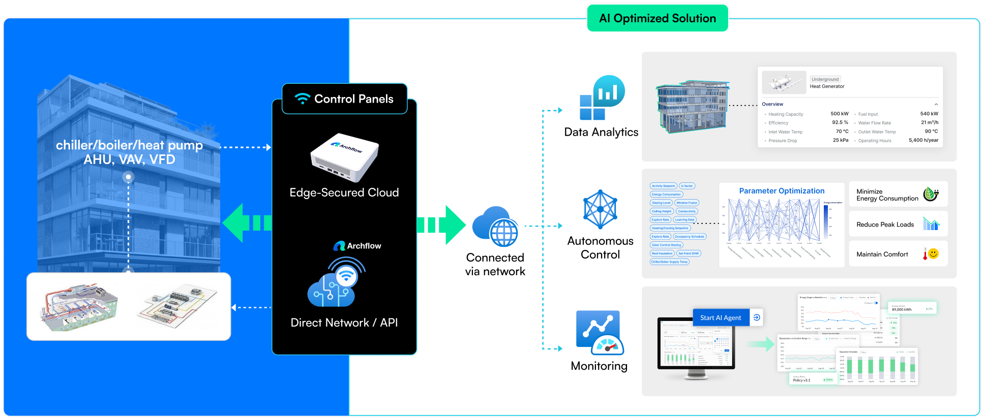 Archflow optimizes your HVAC in real time. Reliable, safe and always within the comfort bounds you set.