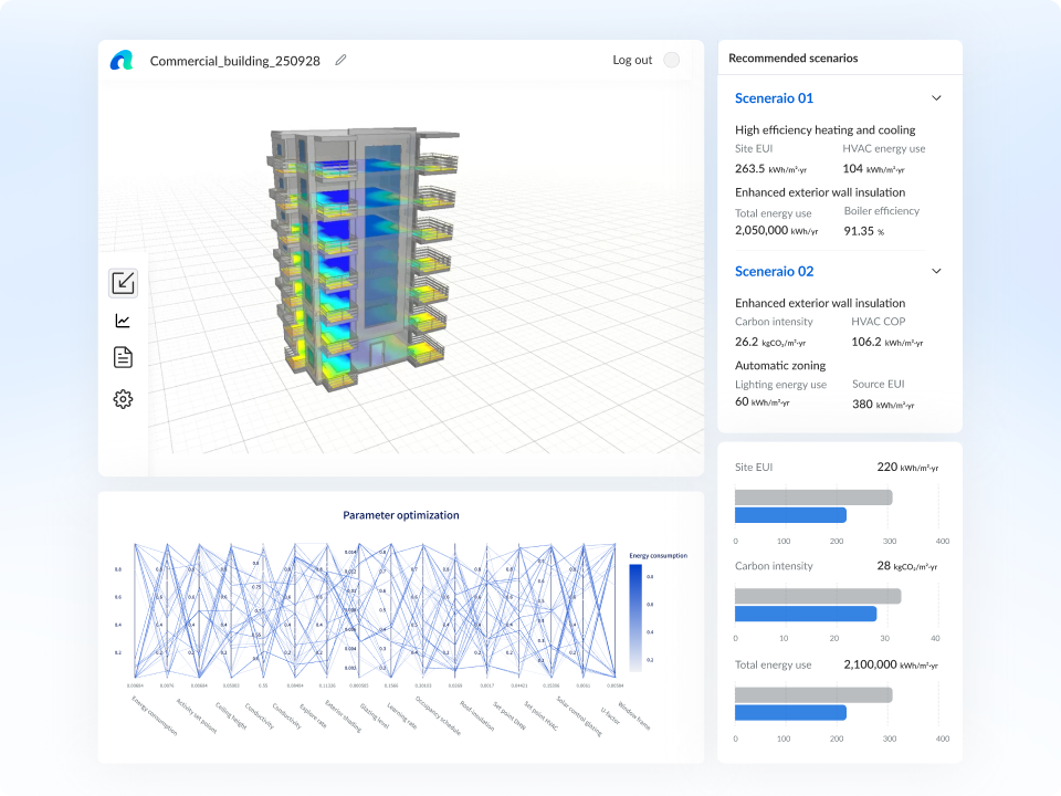 Test multiple options for HVAC, envelope materials, glazing and energy systems. See projected energy use, comfort, and cost outcomes. Generate reports in minutes for easy stakeholder review.