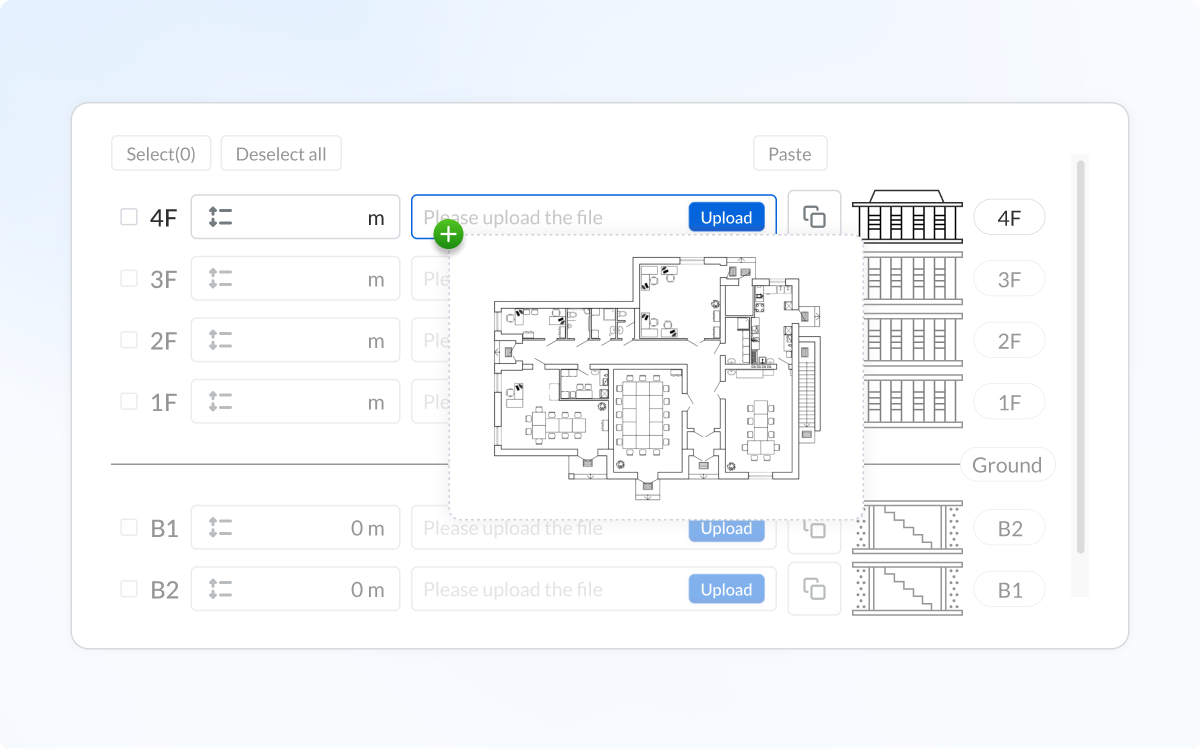 Start with what you have. Upload a 3D model or floor plans (PDF, CAD, image).
